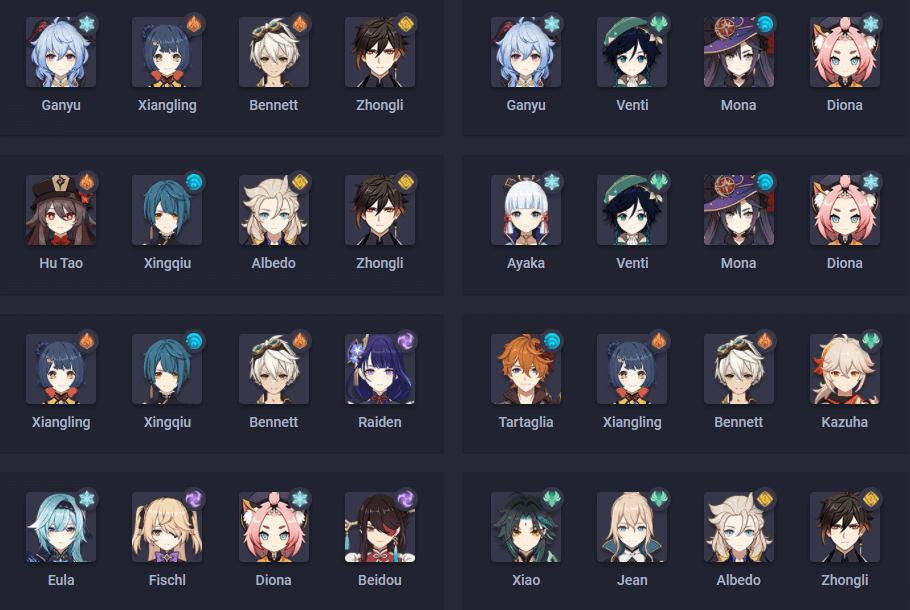 genshin.ggでは以下のチームを一番強い編成としています。(順不同、全て同じぐらい強いとしている)