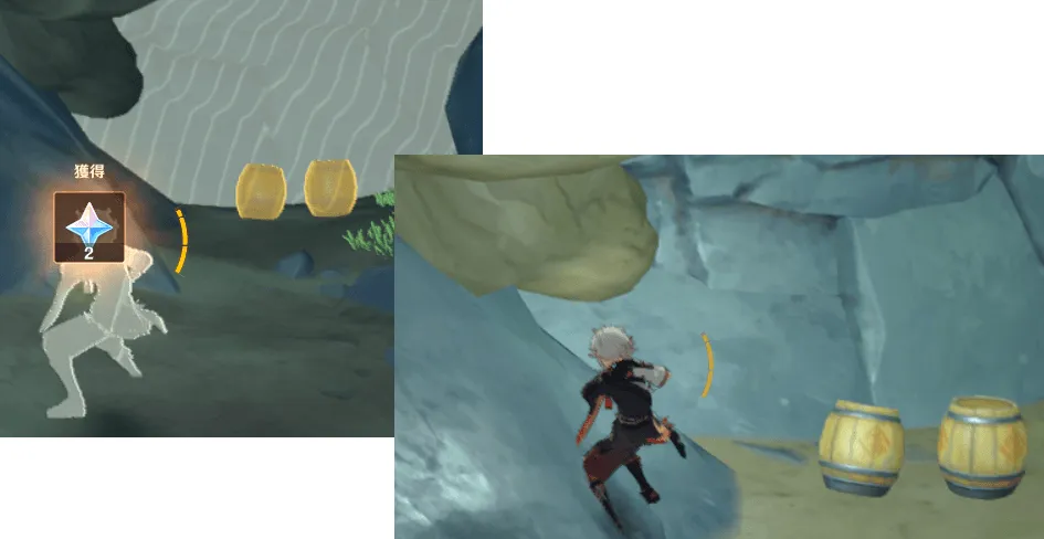 層岩巨淵の地上、地下に1枚ずつ存在し、集めると合体し宝の地図になります。