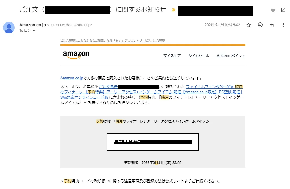 予約特典(シリアルコード)がメールで配信されるまでは数日かかるようです。