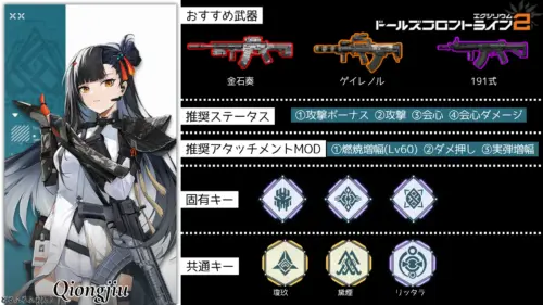 ドールズフロントライン2エクシリウム(ドルフロ2、少女前线2-追放)、瓊玖(けいきゅう)※QBZ191のビルドガイドを作成しました。瓊玖におすすめな武器やアタッチメント・固…