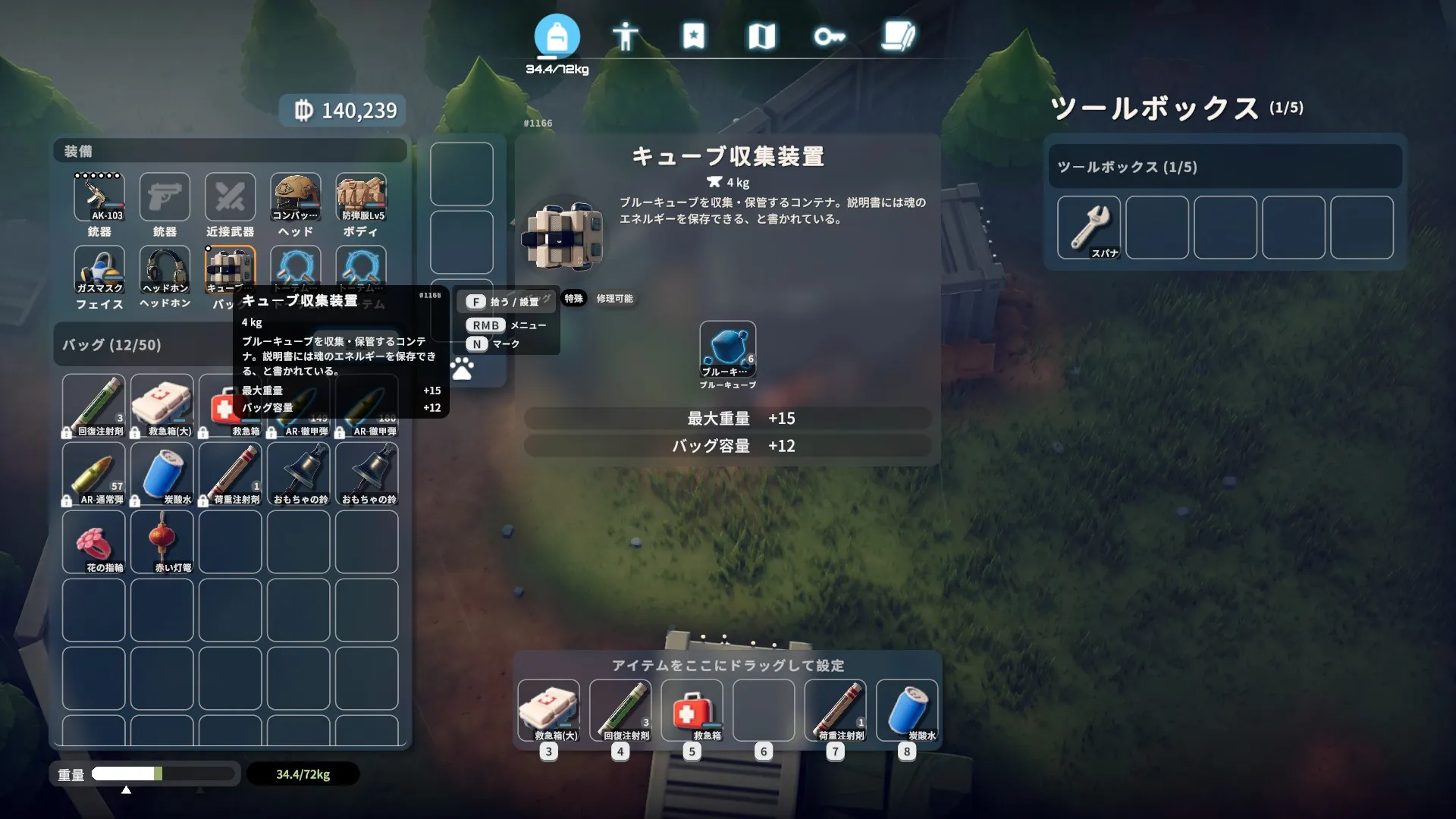 「キューブ収集装置」を装備する