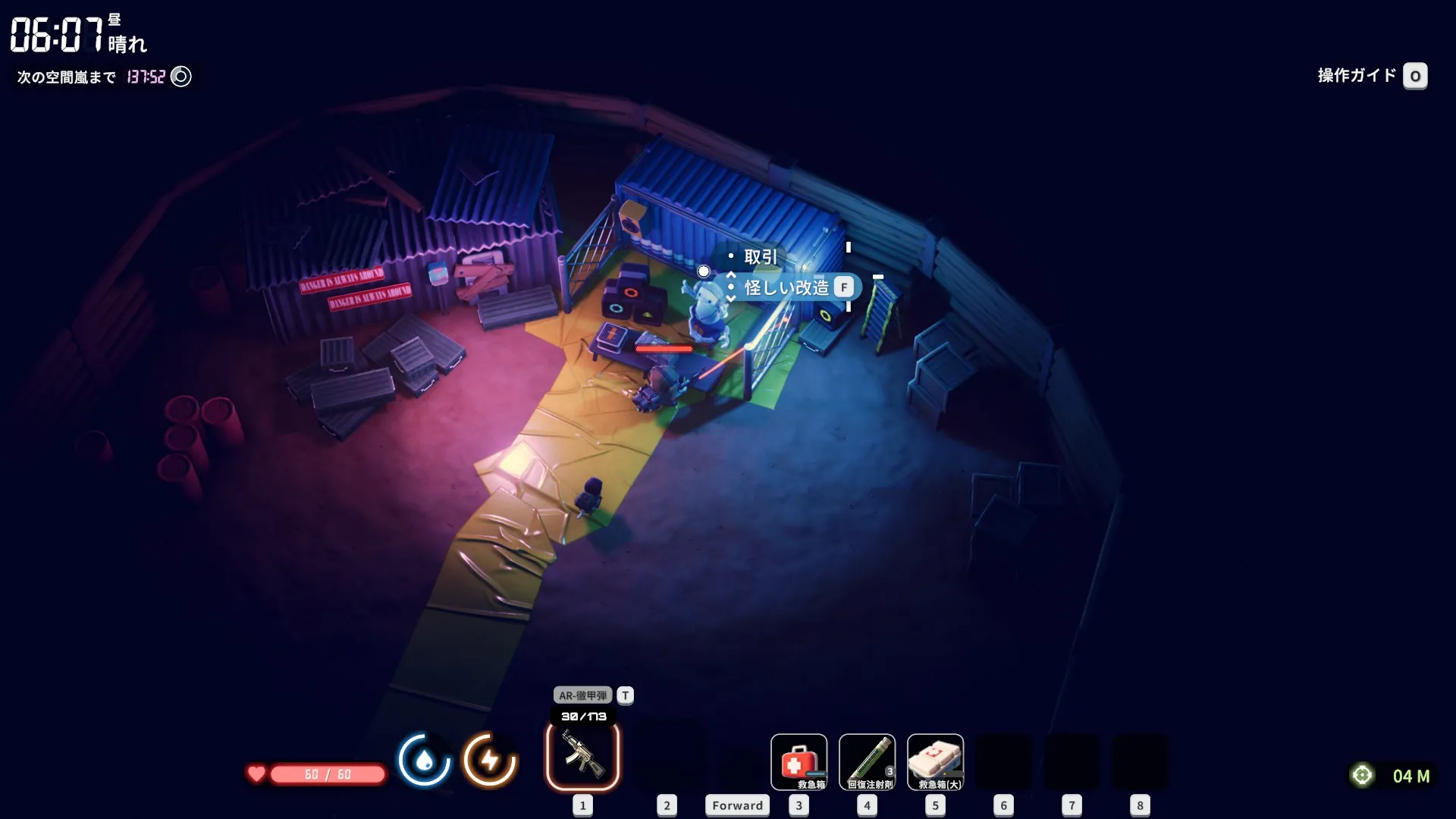 倉庫エリアの地下通路にいる露店商人から「キューブ収集装置」を購入する