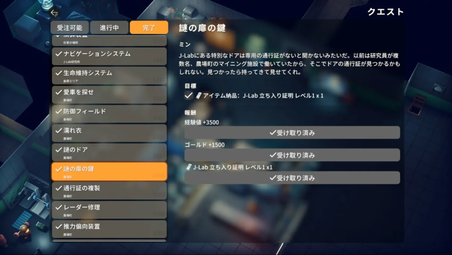 「J-Lab立ち入り証明 レベル1」関連のタスクがあるので、これらを終えた後に行くのがおすすめですね。