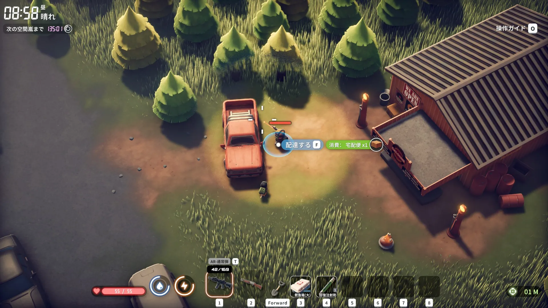 【ダッコフ】クエスト「見習い配達員」情報まとめ【製材所で回収した宅配ボックスをガソリンスタンドに送り届ける】