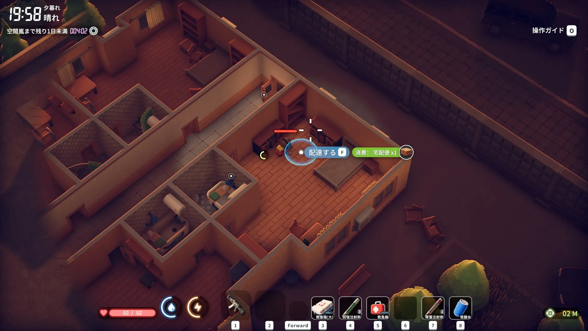 北の工場地区の東にある警備室から荷物を回収後、転送バブル-1を利用すると療養所東の部屋までショートカットできますよ。