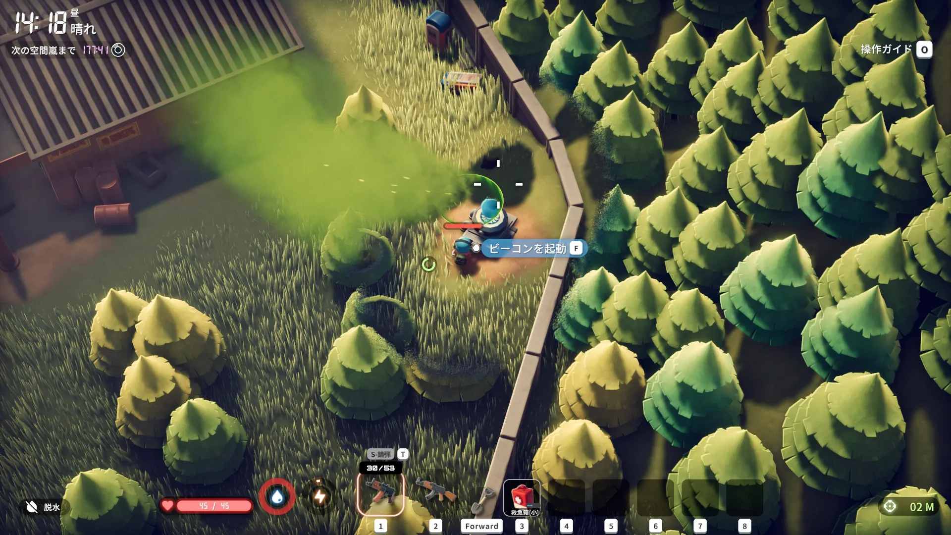 倉庫エリアのガソリンスタンドに向かってビーコンを起動する