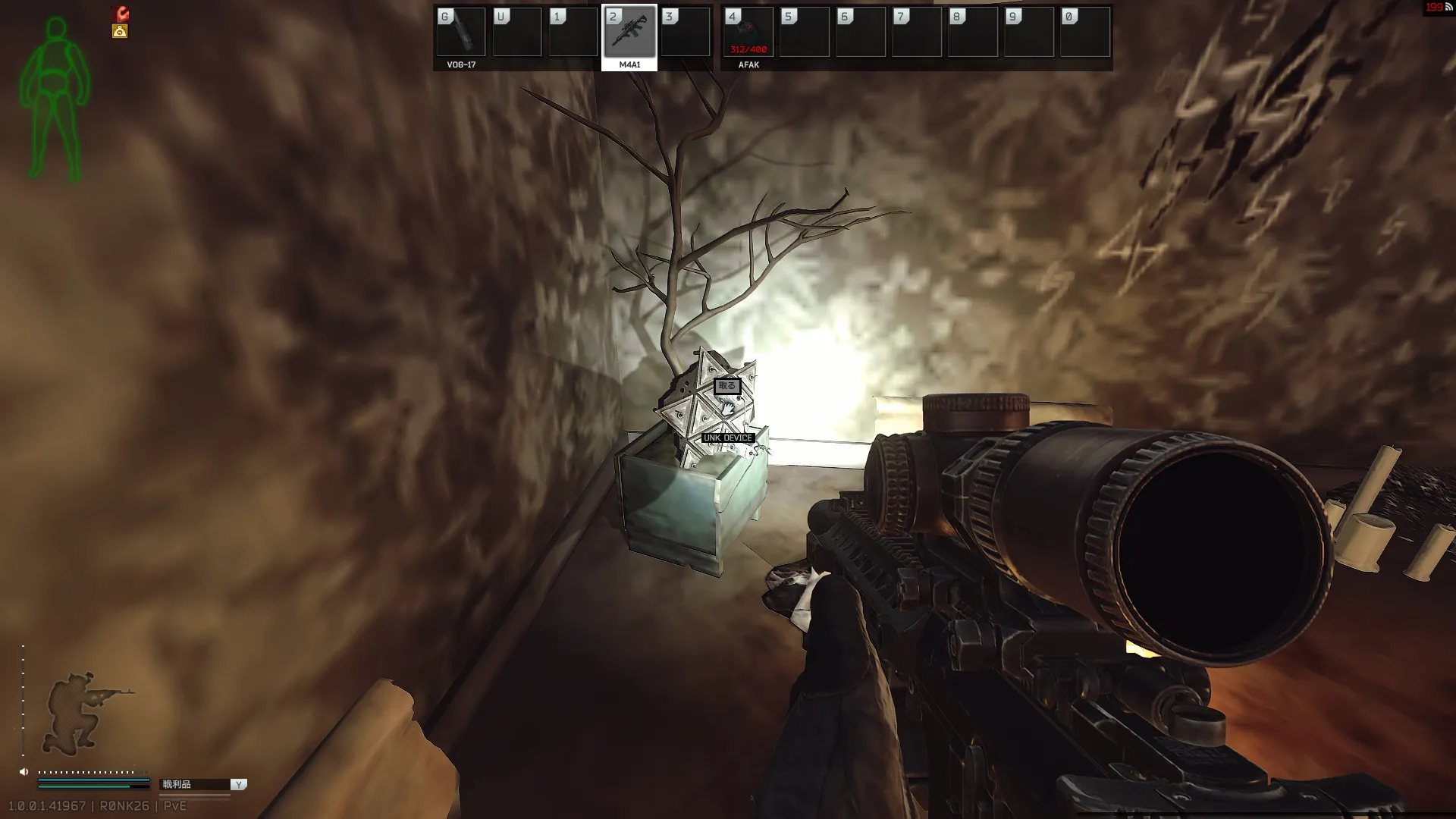 ストーリーアイテム「未知の装置の破片(UNK.DEVICE)」は、「マークの刻まれた怪しい部屋の鍵(Chek.13)」部屋の中にあります。