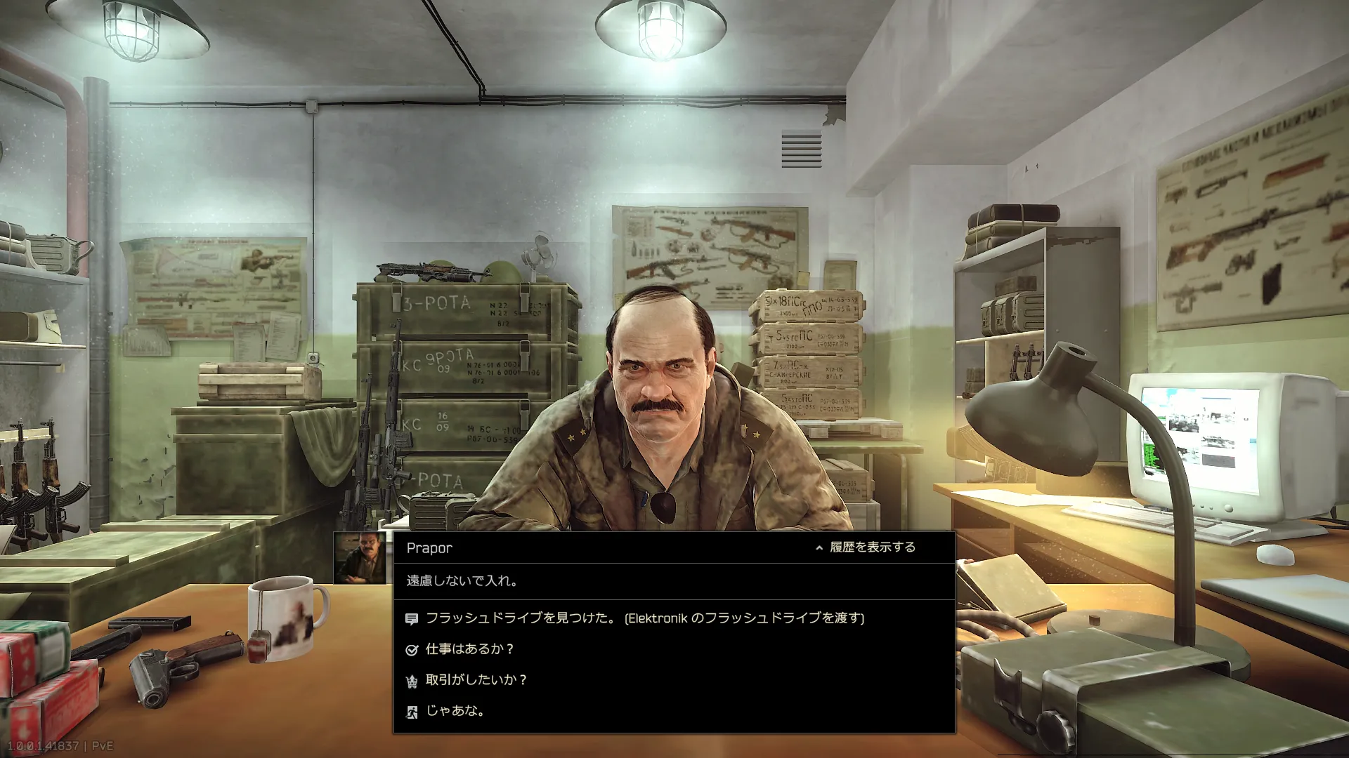 「フライトクルーの記録」「Elektronikの暗号化されたUSBフラッシュドライブ」の2つを揃えたらPraporに話しかけましょう。