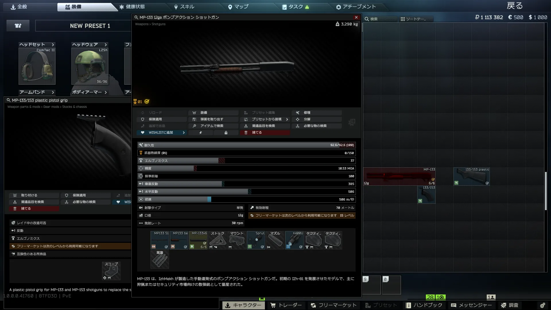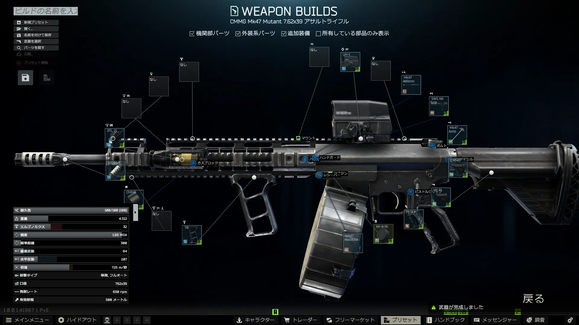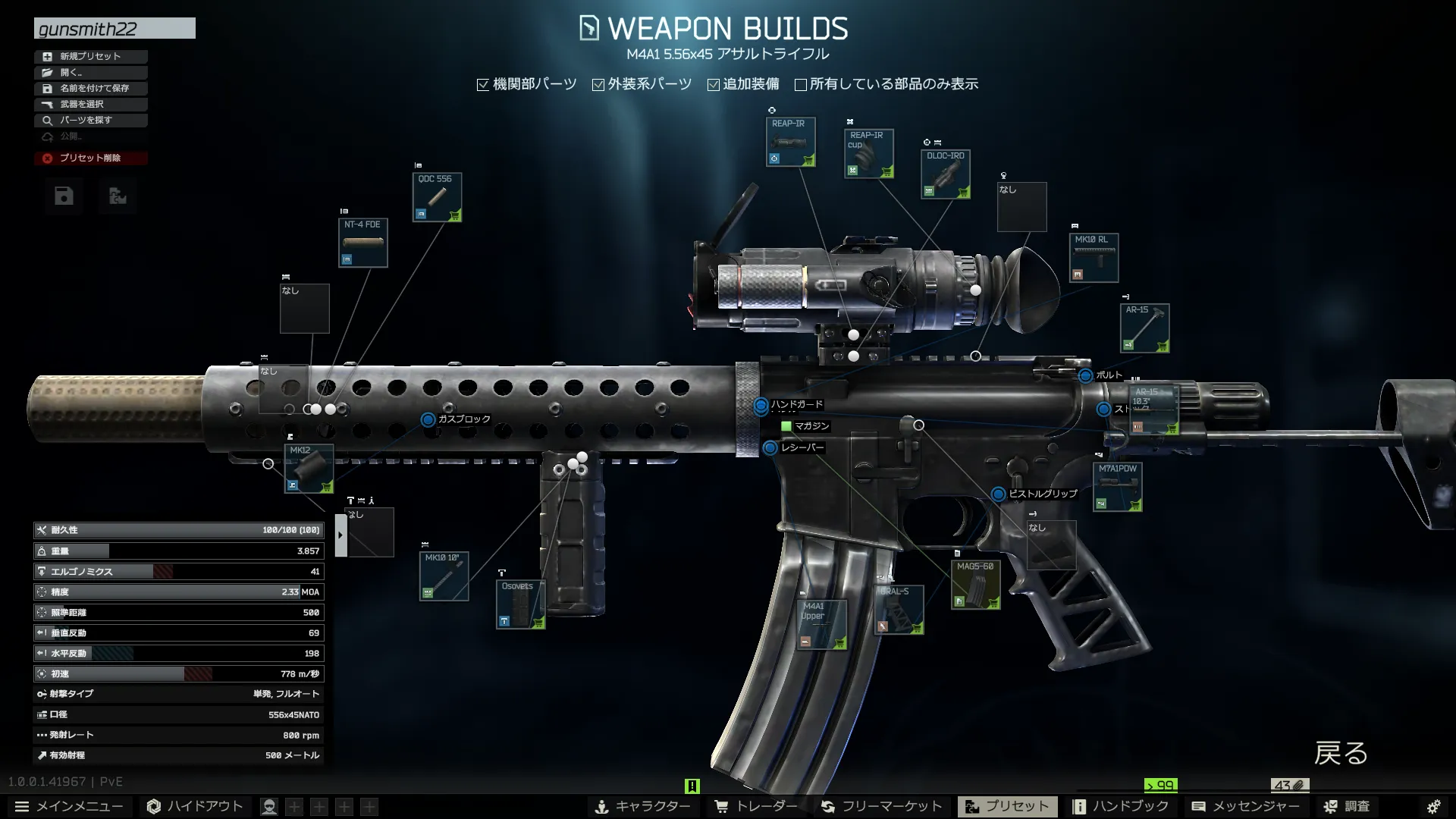 発展内容として、Scav出撃時に所持していた武器を修理し、耐久値を規定ラインまで戻してカスタマイズしていくこともできます。
