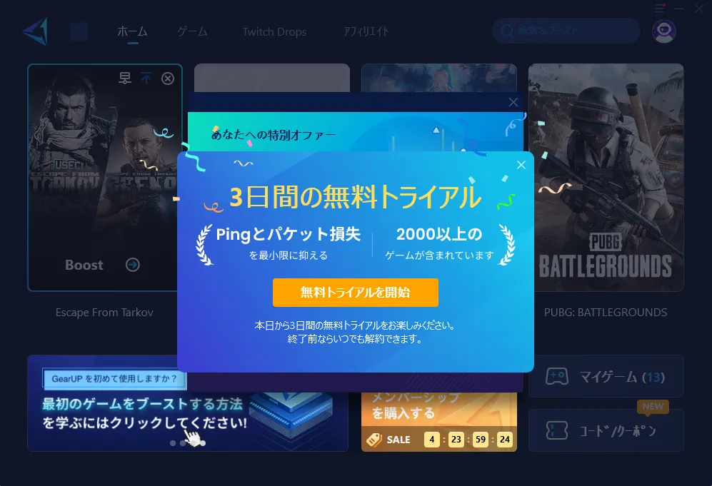ゲームブースター「GEARUP」の割引コード