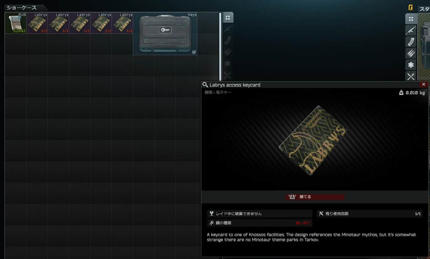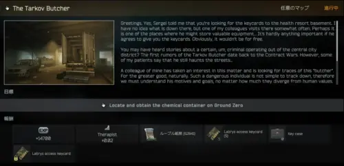 Escape from Tarkov(エスケープフロムタルコフ)、Therapist「Forced Alliance」を解説しています。 タスク内容は「ラビリンスのキーカードを入手する」です。 タルコフ攻略の参考にしてください。