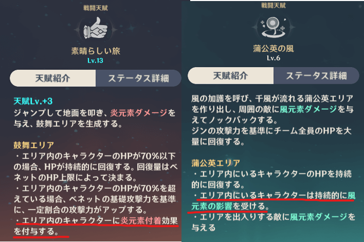 • ベネットの爆発はフィールド内の味方に定期的に炎元素付着する