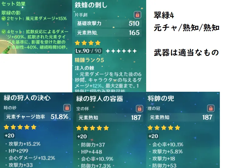 • 翠緑4セット … 耐性ダウン、拡散ダメージアップ