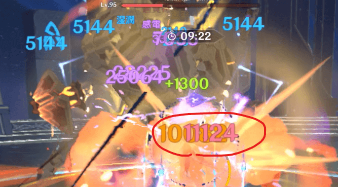 今回の録画キャプチャから、ジンによる反応ダメージは毎秒あたり20000程度出ているようです。(11124+10082)