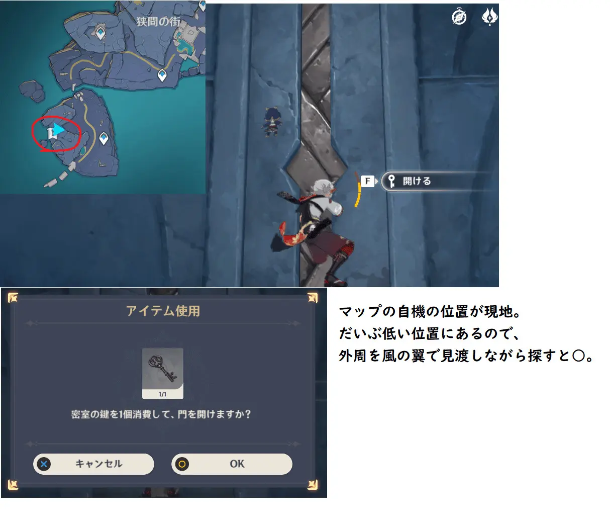密室の鍵の使い方、場所(狭間の街南西、格子で阻まれた地下への入り方)【原神】