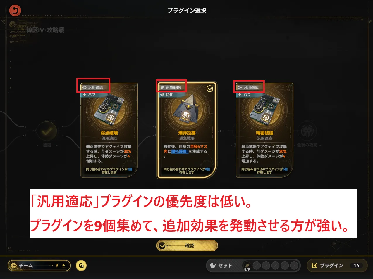 各カテゴリのプラグインを累計9個集めるミッションもありますから、まだ達成していないカテゴリのプラグインを選んでいきましょう。