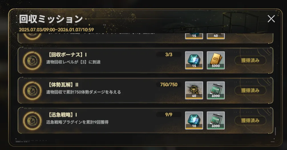 イベント「遺物回収」は同一カテゴリを9個集めて、セット効果を発動させるのが強いです。