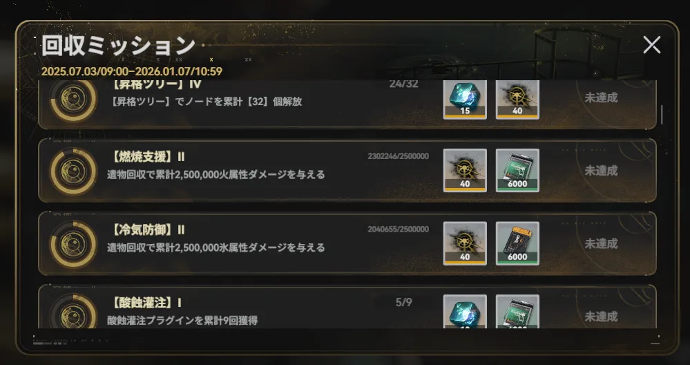 また、回収ミッションに属性ダメージの累計ミッションがあります。