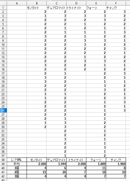 鉱石系の素材と、肉系の素材はレアドロップ倍率上昇の効果が適用されているようです。