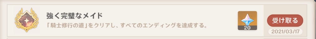 それぞれのキャラクターのアチーブメントで、「原石×20」個を入手できるので回収しましょう。