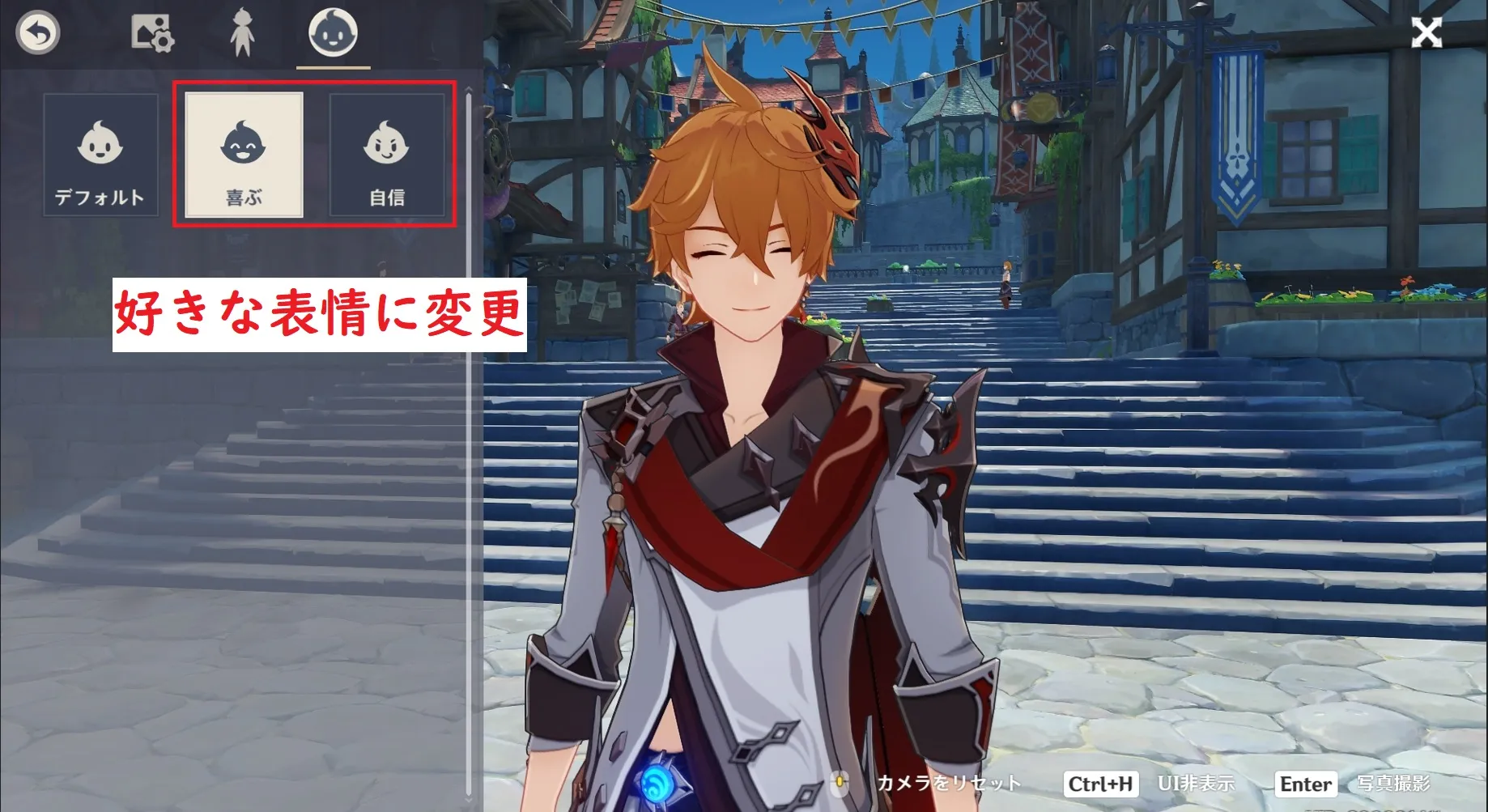 原神(げんしん)では、キャラクターを好きな表情に固定することができます。