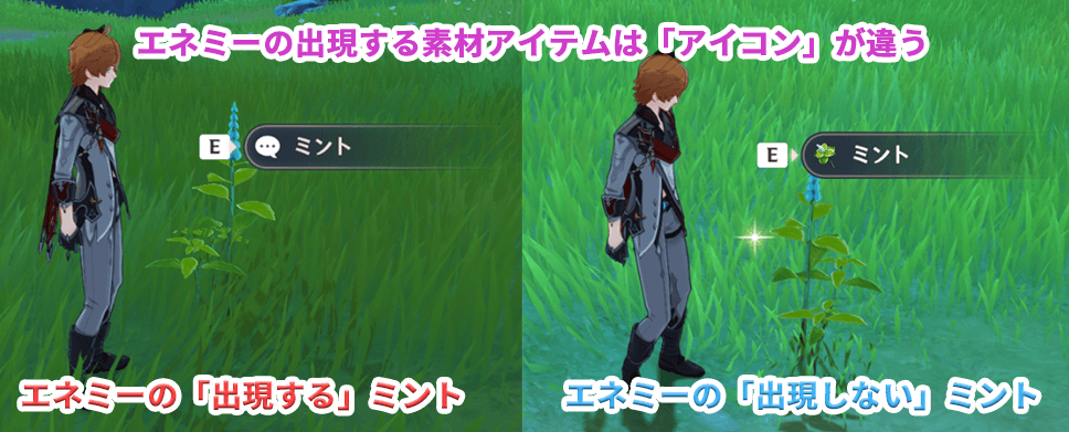 【原神】エネミーの出てくる採取アイテムの見分け方