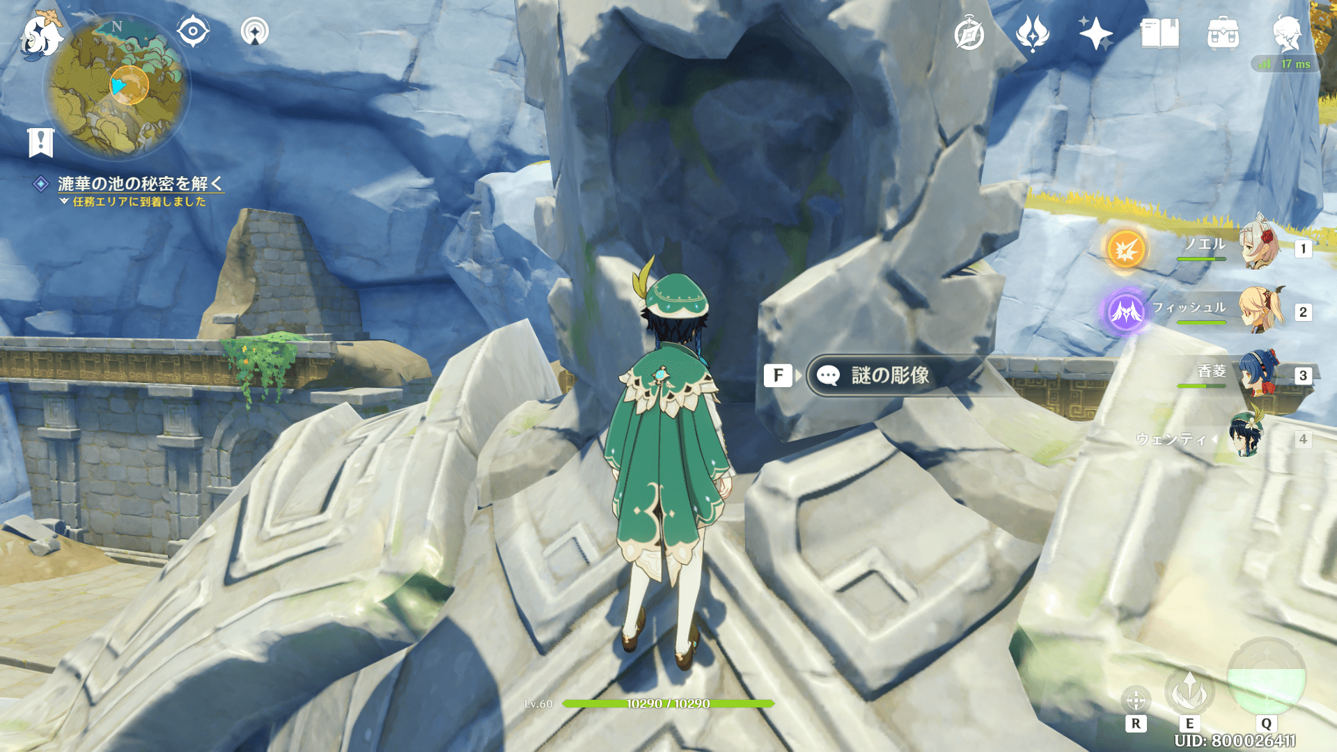「漉華の池」の遺跡の前の画家に話かけることで、世界任務が開始されます。