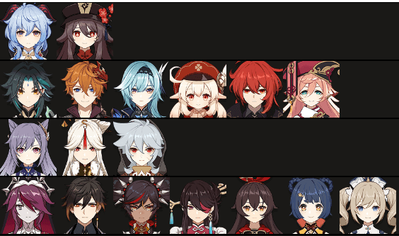 甘雨、行秋、ウェンティ、モナ、アルベド、鍾離、クレー、香菱、フィッシュル、ジン、主人公のようなキャラクターが属しています。