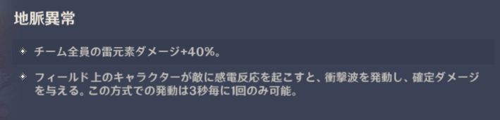 - チーム全員の雷原素ダメージ+40%