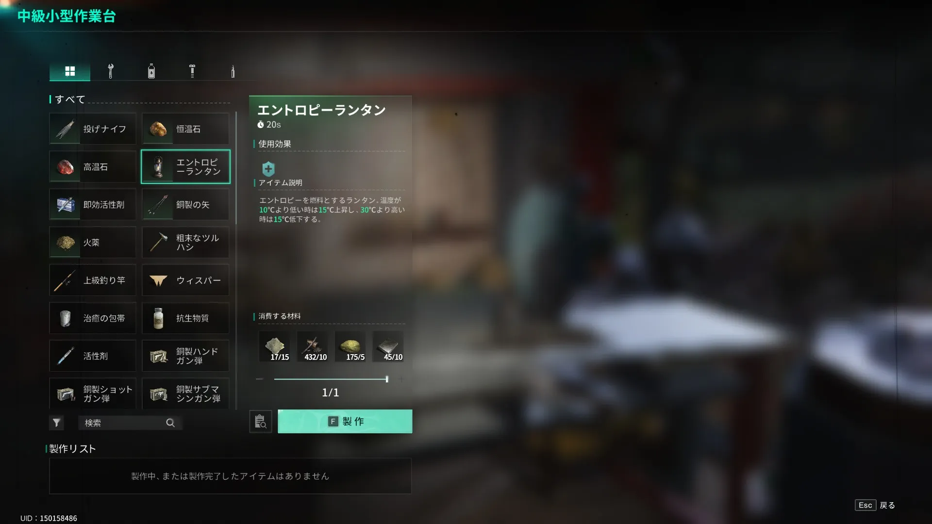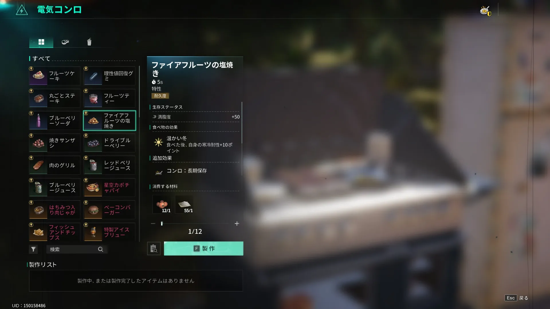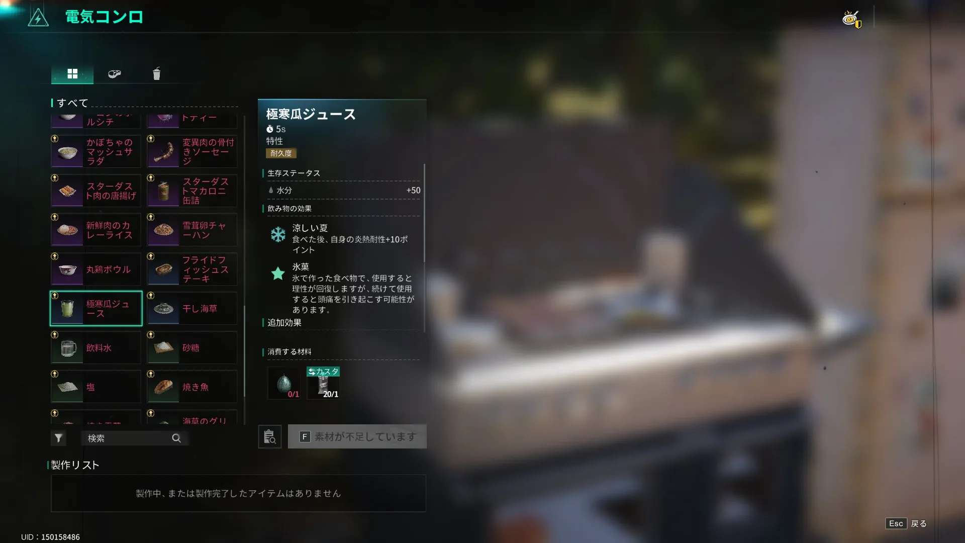 料理を作成して寒冷耐性・酷暑耐性を獲得する