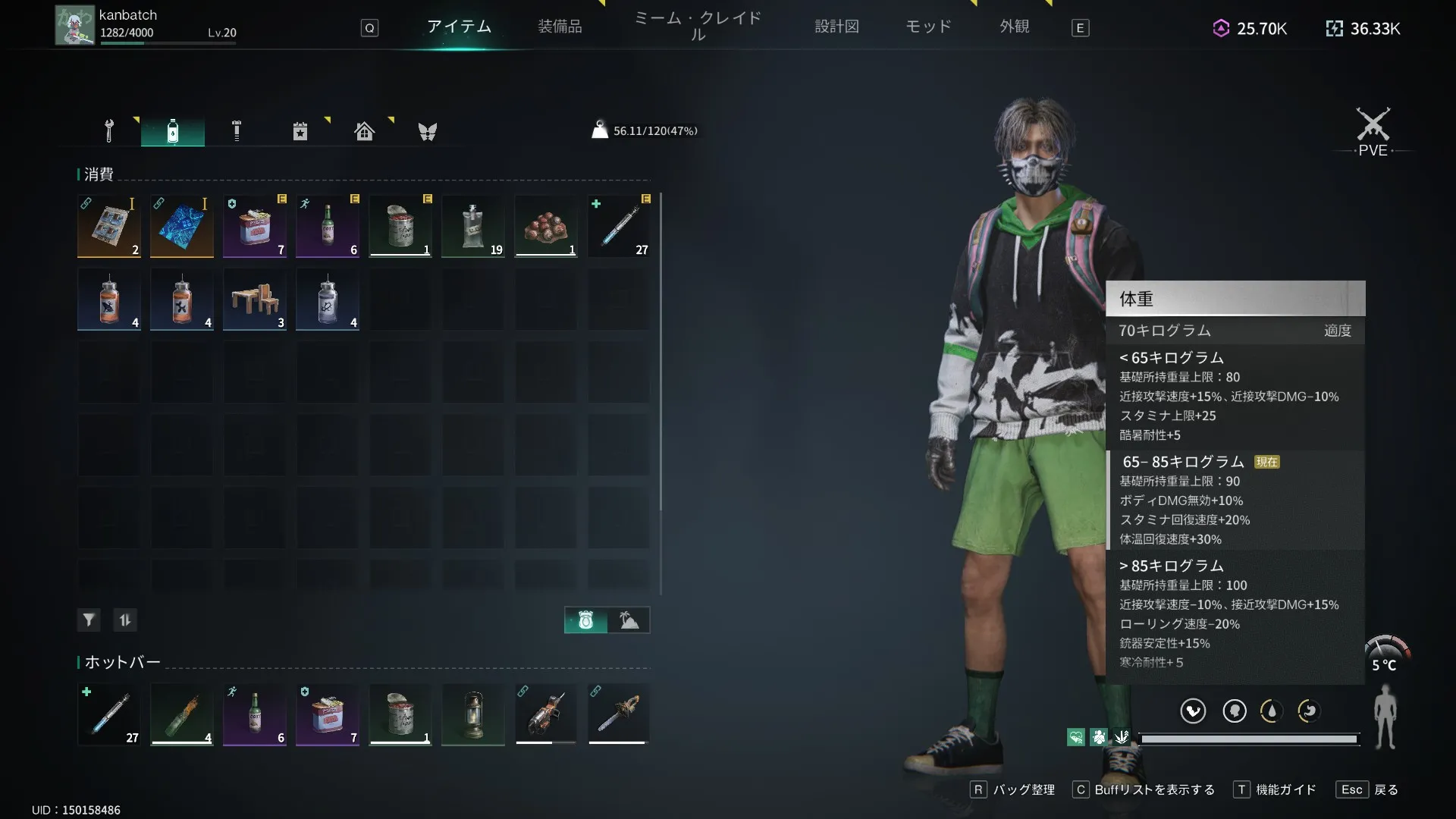 少し細かいネタですが、体重を管理することで酷暑耐性・寒冷耐性を得ることができます。