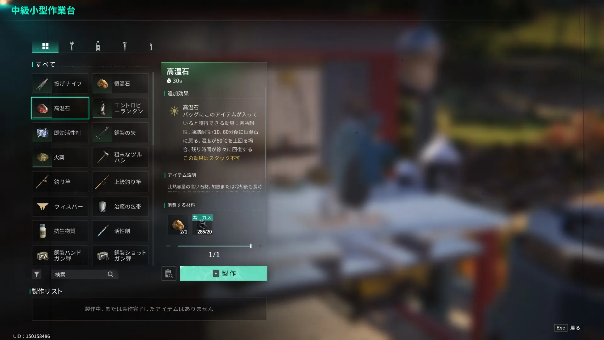 「恒温石」を作成し、「高温石」「低温石」へと加工してきます。