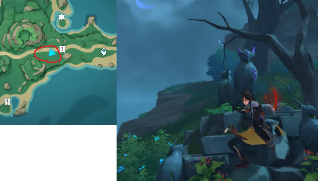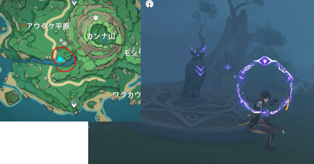 「霧」の気候で、長時間内部にいると最寄りのワープポイントに戻されてしまうので、定期的に雷元素で道標を殴るのを忘れないで下さい。