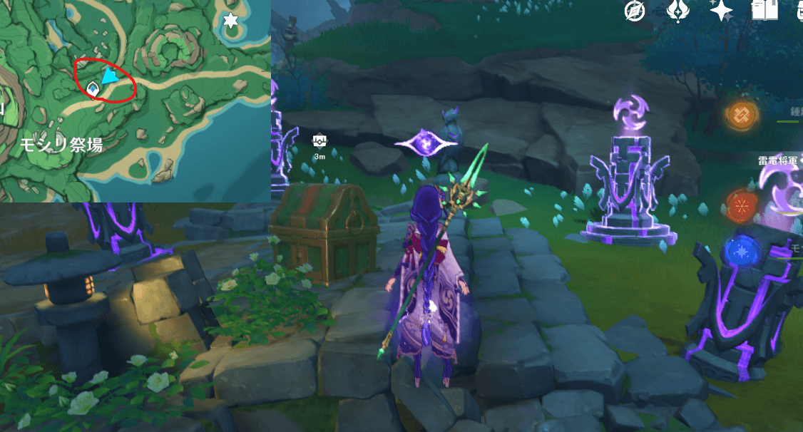 像を起動すると雷の種と、付近の雷バリアの中に宝箱が出現しました。