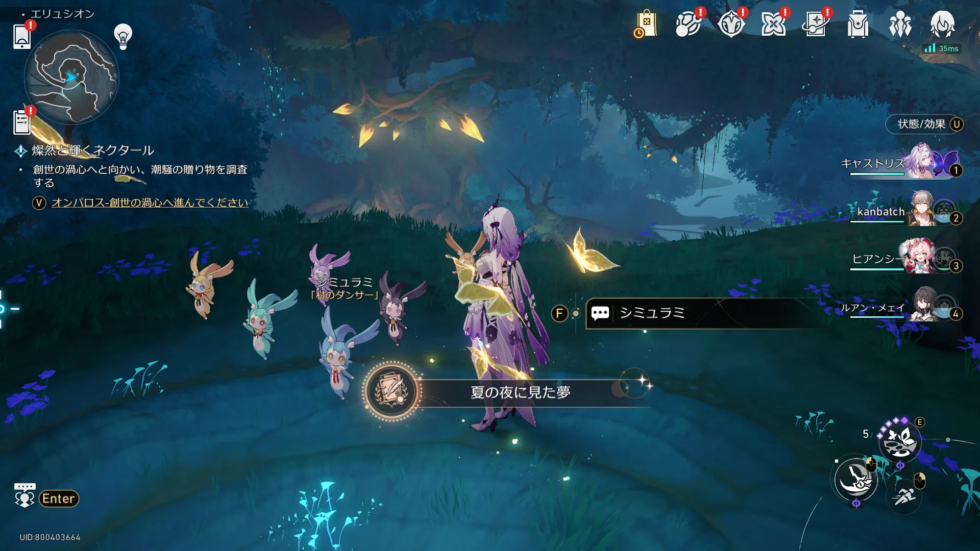 - シミュラミに話しかけて、アチーブメント「夏の夜に見た夢」取得