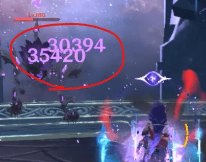 祝福が単元素パーティ優遇なのでアレですが、「Lv98剣鬼に、Lv80,8/6/8一斗の連続重撃が35000ダメージ」あたりは参考になるんじゃないかなと思います。