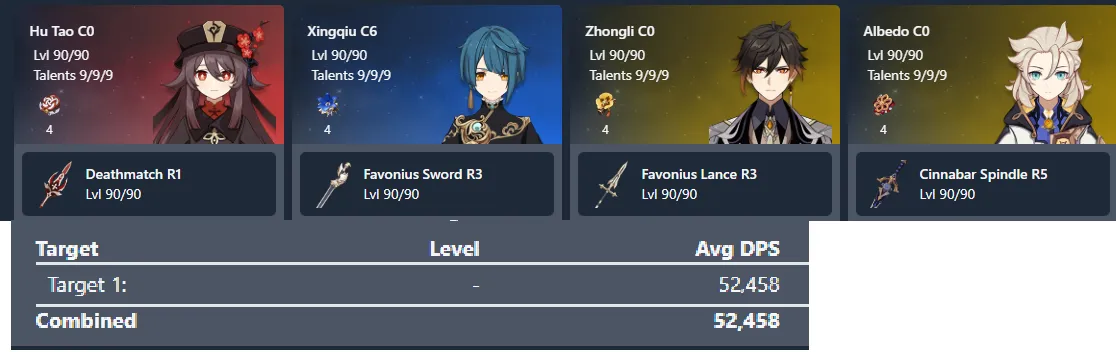 このチームDPSはベーシックなタイプの蒸発胡桃編成に匹敵(52458)する程度のDPSです。