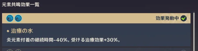 - 水共鳴効果(受ける治癒効果)をダメージに変換