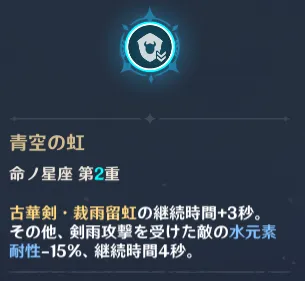 | 行秋 | 絶縁4 | 黎明の神剣 | 攻撃力%/水元素/会心率 |