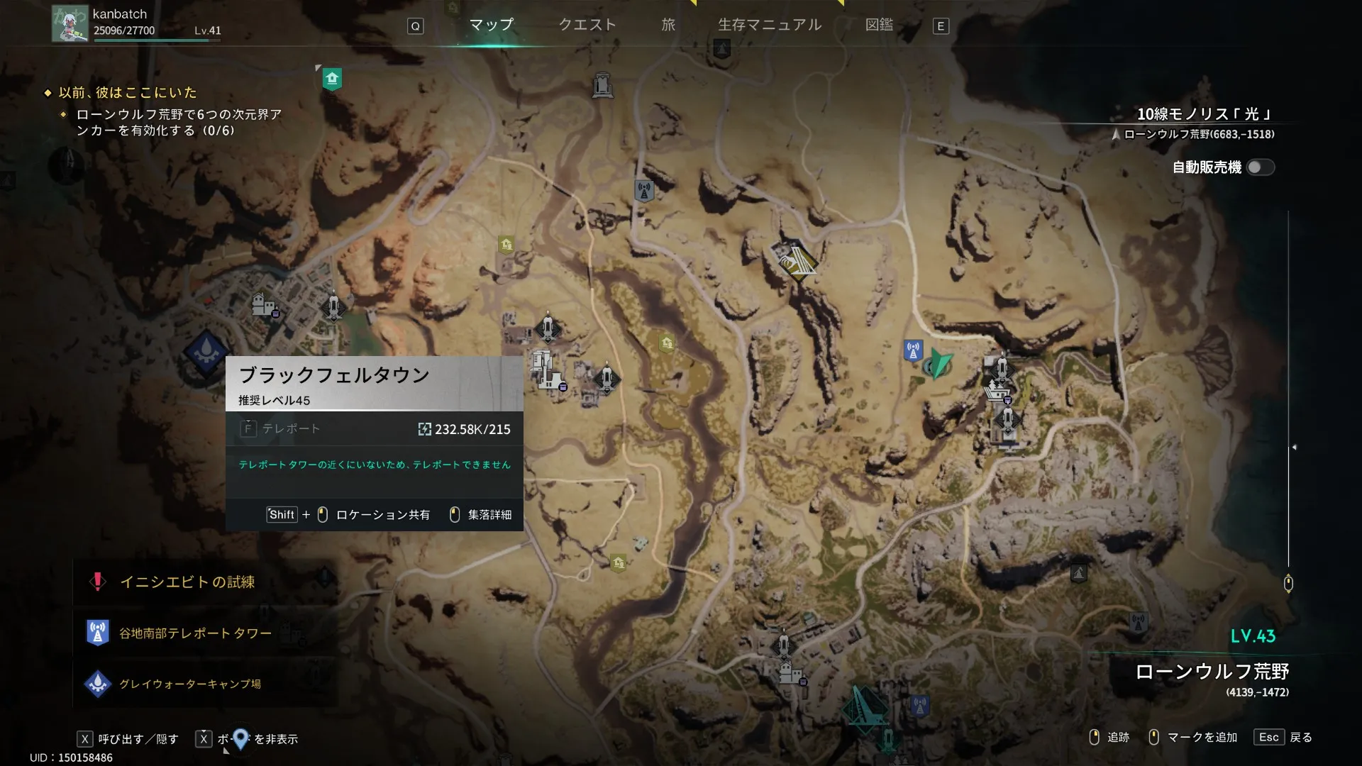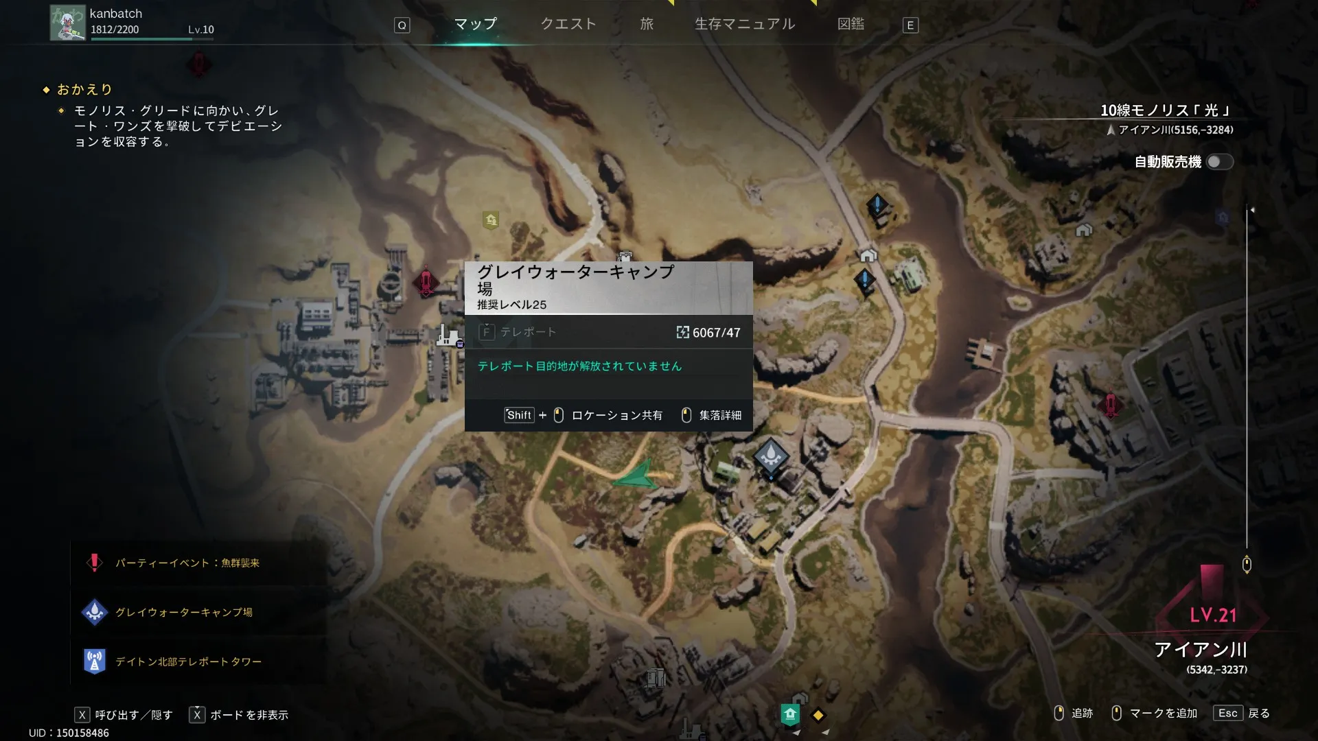ローンウルフ荒野北東部の異常ポイント「ブラックウォーターカメラ」探索報酬
