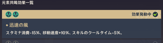 風元素共鳴によって移動関連がめちゃくちゃ強化されます。