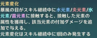 元素爆発で発生する暴風の目は、他元素と触れると接触元素の追加ダメージを与えるようになる。
