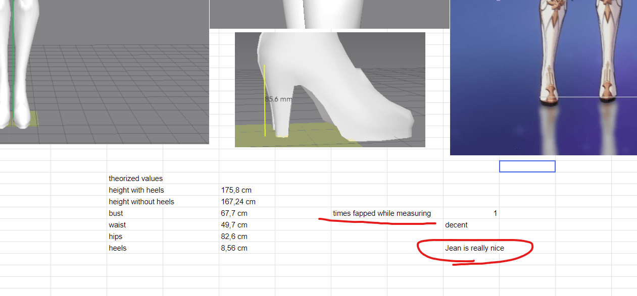 ゲーム内モデルからの計測なので現実的ではない数値も多々ありますが、キャラクター間の体格差の比較等に活用できるかもしれません。