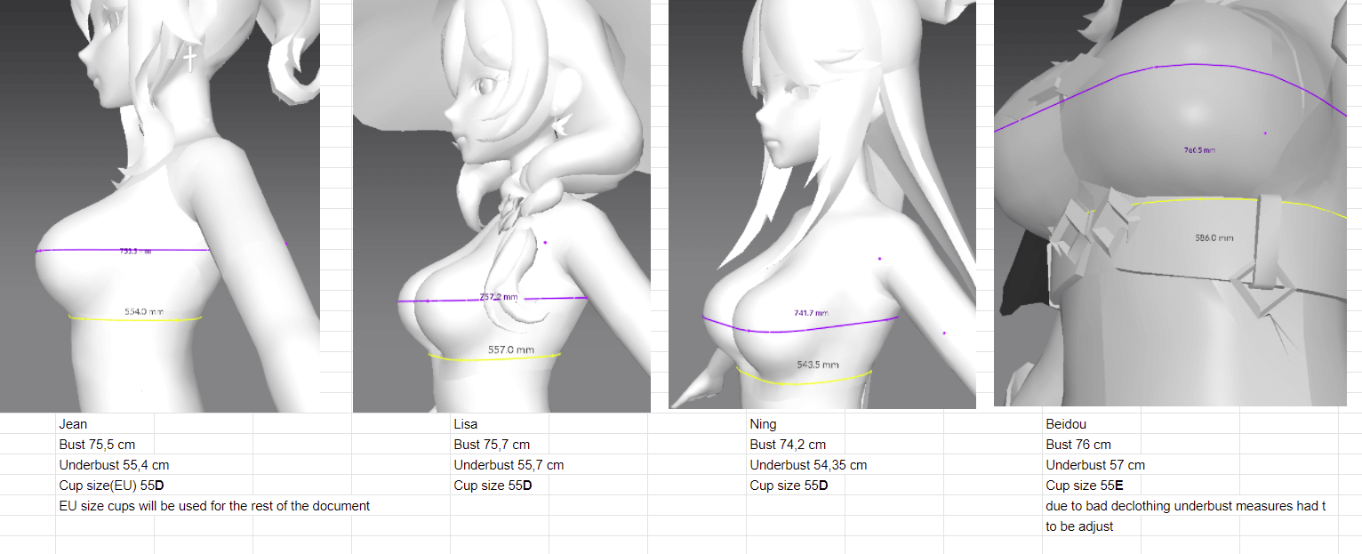 (一部のキャラでは衣装が複雑で計測が難しいため、目算や暫定的な物もあるようです。)