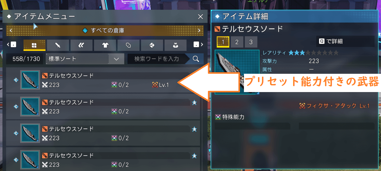 プリセット能力に関する解説とレベル毎の効果一覧【PSO2NGS】