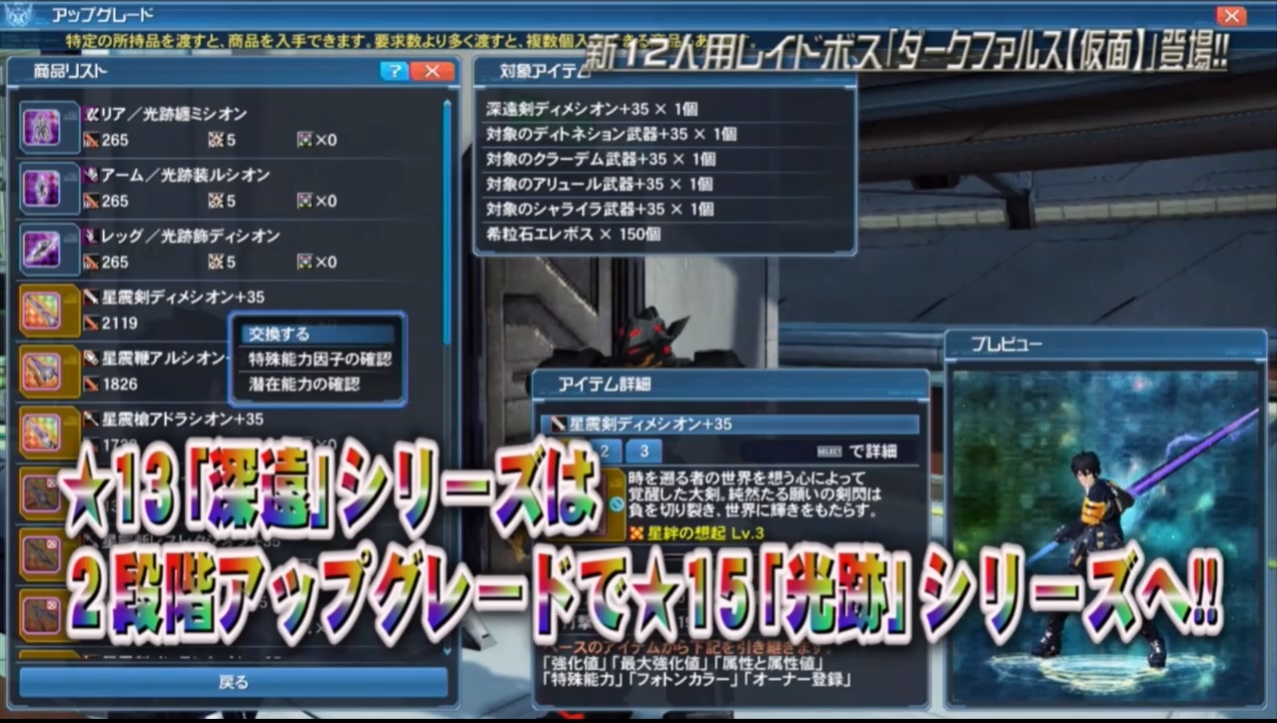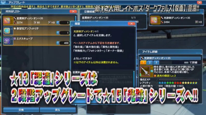 「☆13:深淵」「☆14:星震」「☆15:光跡」のアップグレード
