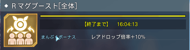 リージョンマグにエサをあげると、レアドロップ倍率+20%(最大)のバフ効果を得ることができます。