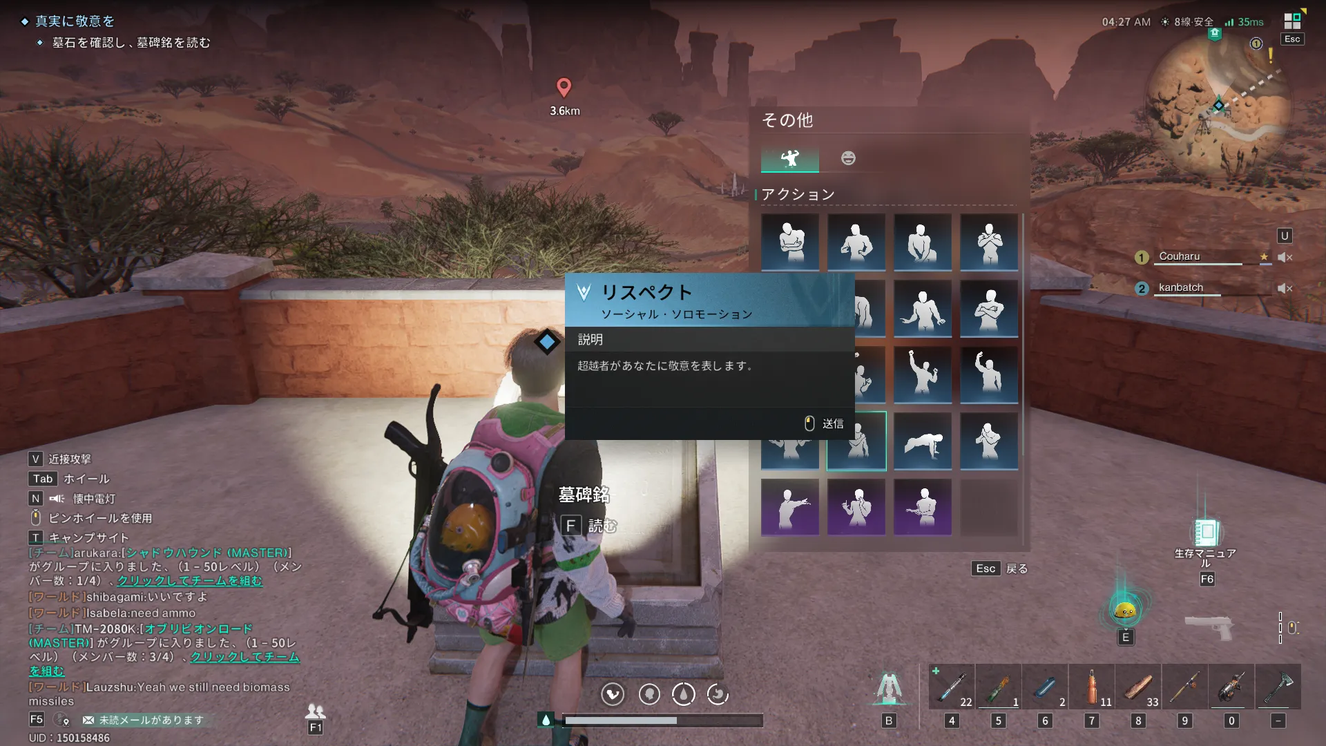 エモート「リスペクト」を行う