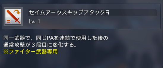 ダブルセイバーの場合、「セイムアーツスキップアタックFi」「アナザーアーツスキップアタックFi」を採用すると、PP効率が良くなりますがDPSは下がります。