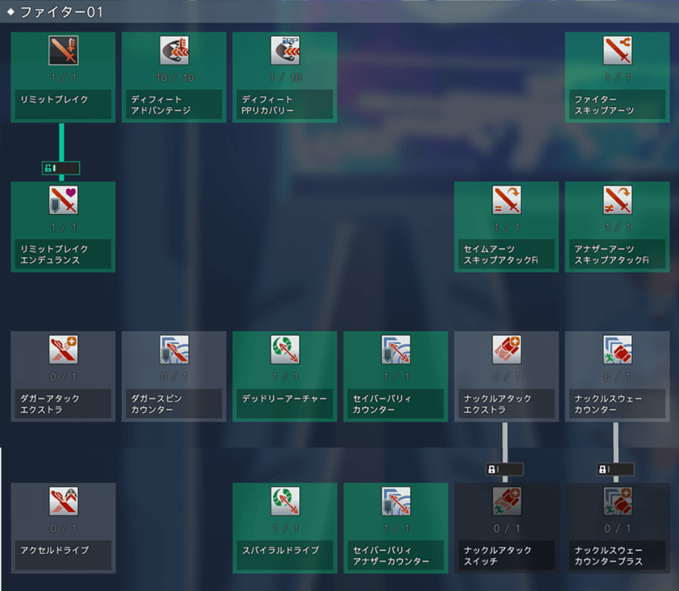ファイターのスキルツリーをこだわったバージョンは以下のツリーです。